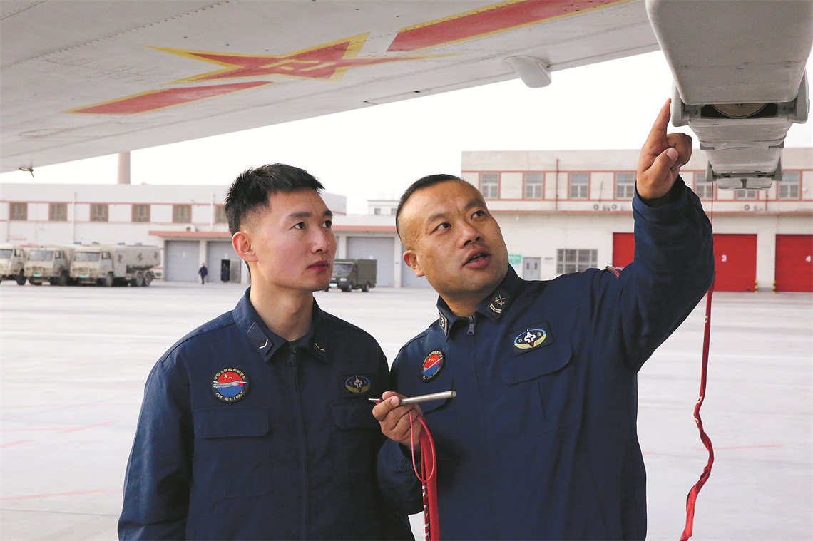 越是挑战,越能激发斗志。考核前夕,王永身兼双重角色——他先是充当讲解员,为大家逐一讲解装挂流程和规避差错方法;又化身教练员,实地示范教学,手把手帮带……经过专攻精练,他们机组能力进步明显。考核当天,他们以大比分优势拔得头筹。